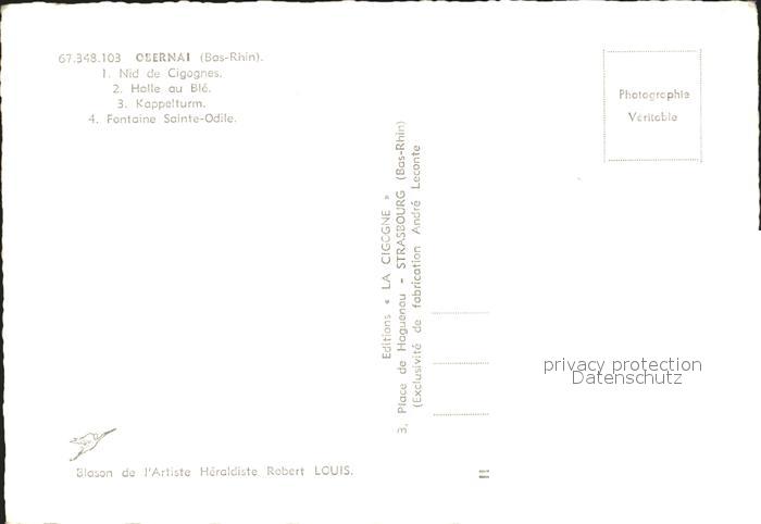 12206922 Obernai Bas Rhin Nid Cigognes Halle Ble Kappelturm Fontaine Sainte Odile postalisch nicht gelaufen Erhaltung siehe scans KatCode: 11170067567348