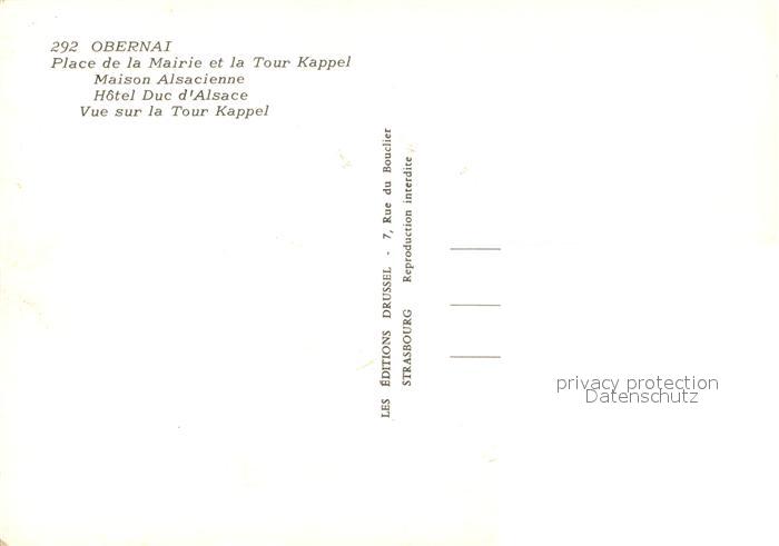 Obernai Bas Rhin Place de la Mairie Tour Kappel Maison Alsacienne Hôtel Duc d Alsace postalisch nicht gelaufen Erhaltung siehe scans [FriedD77]