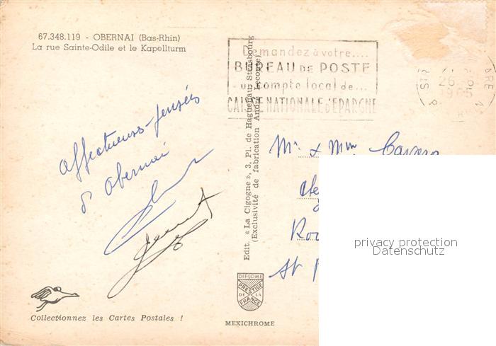 carte postale Obernai Bas Rhin Rue Sainte Odile et le Kapellturm postalisch gelaufen Erhaltung siehe scans [FriedD77]