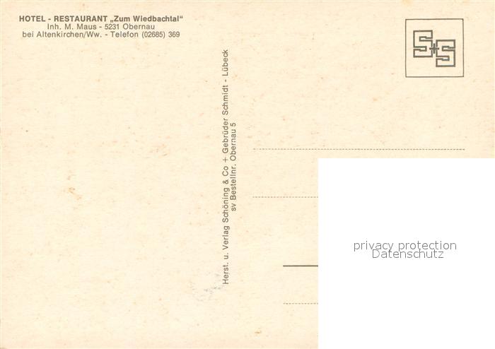 73717266 Obernau Westerwald Hotel Restaurant Zum Wiedbachtal Gastraeume Bar postalisch nicht gelaufen Erhaltung siehe scans [WerneD78] KatCode: 11110007132084