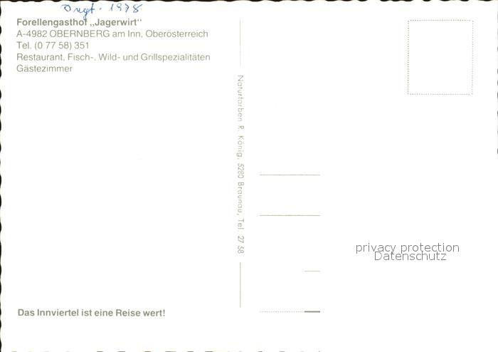 72447156 Obernberg Inn Forellengasthof Jagerwirt Gaststube postalisch nicht gelaufen Erhaltung siehe scans KatCode: 11390311041219