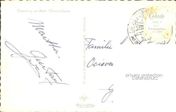 31841165 alte Postkarte Obernburg Main Glanzstoffwerke Fliegeraufnahme postalisch gelaufen Erhaltung siehe scans KatCode: 11110009676145