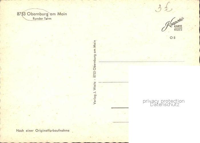 72231487 Obernburg Main Runder Turm postalisch nicht gelaufen Erhaltung siehe scans KatCode: 11110009676145