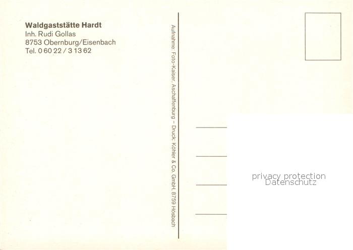 73615320 Obernburg Main Waldgaststaette Hardt postalisch nicht gelaufen Erhaltung siehe scans [WerneD78] KatCode: 11110009676145