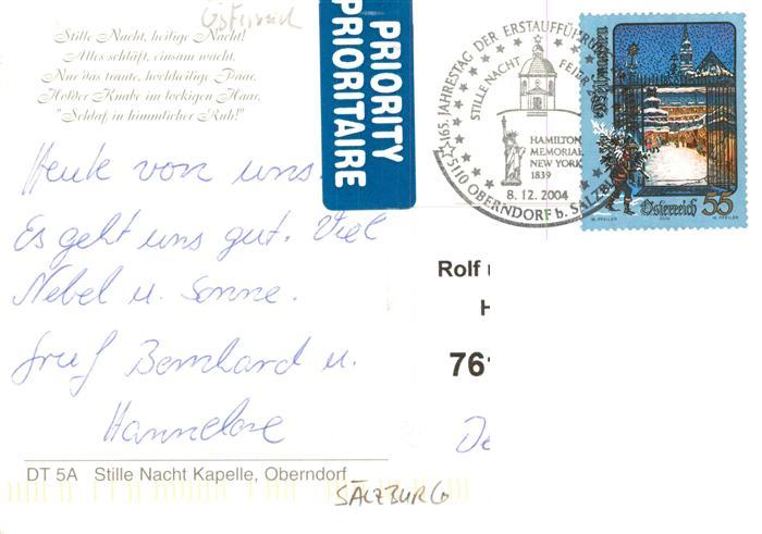 73937248 alte Postkarte Oberndorf Salzburg AT Kapelle postalisch gelaufen Erhaltung siehe scans [WerneD78] KatCode: 11390323050326