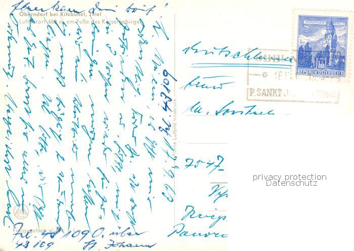 73522111 alte Postkarte Oberndorf Tirol am Fusse des Kaisergebirge Fliegeraufnahme bei Kitzb?hel postalisch gelaufen Erhaltung siehe scans [LiesaD40] KatCode: 11390335070413