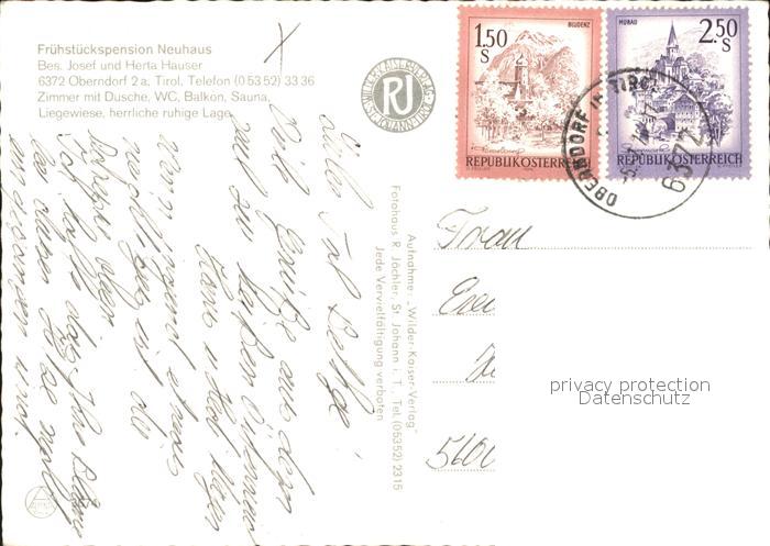 71866462 alte Postkarte Oberndorf Tirol Fruehstueckspension Neuhaus postalisch gelaufen Erhaltung siehe scans KatCode: 11390335070413