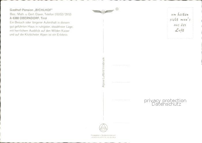 72260964 Oberndorf Tirol Gasthof Pension Bichlhof Fliegeraufnahme postalisch nicht gelaufen Erhaltung siehe scans KatCode: 11390335070413
