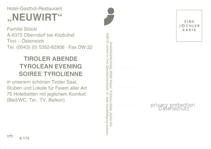 73614128 Oberndorf Tirol Hotel Gasthof Neuwirt Tiroler Abende postalisch nicht gelaufen Erhaltung siehe scans [WerneD78] KatCode: 11390335070413