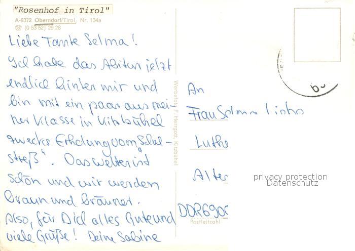73323772 alte Postkarte Oberndorf Tirol Rosenhof postalisch gelaufen Erhaltung siehe scans [WerneD78] KatCode: 11390335070413