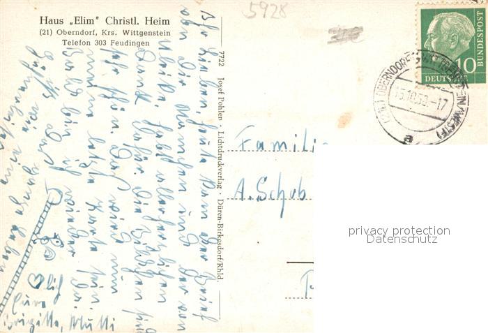 73700940 alte Postkarte Oberndorf Wittgenstein Haus Elim Christliches Heim postalisch gelaufen Erhaltung siehe scans [FriedD77] KatCode: 11110005970028