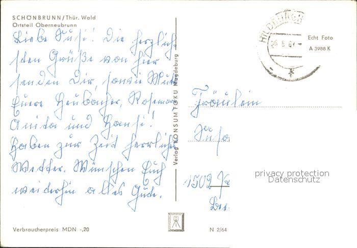 72274873 alte Postkarte Oberneubrunn postalisch gelaufen Erhaltung siehe scans KatCode: 11110016069042