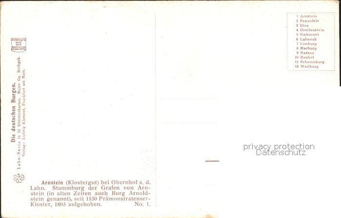 72250348 Obernhof Lahn Arnstein Klostergut Kuenstlerkarte postalisch nicht gelaufen Erhaltung siehe scans KatCode: 11110007141103