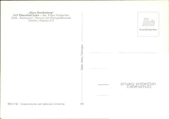 72112887 Obernhof Lahn Haus Goetheberg Cafe Restaurant postalisch nicht gelaufen Erhaltung siehe scans KatCode: 11110007141103