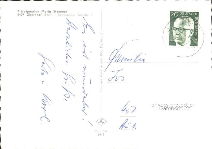 72140308 alte Postkarte Obernhof Lahn Haus Stemmer Pension postalisch gelaufen Erhaltung siehe scans KatCode: 11110007141103