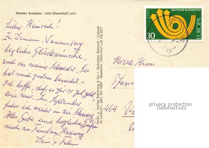 74085069 alte Postkarte Obernhof Lahn Kloster Arnstein Fliegeraufnahme postalisch gelaufen Erhaltung siehe scans [WerneD78] KatCode: 11110007141103