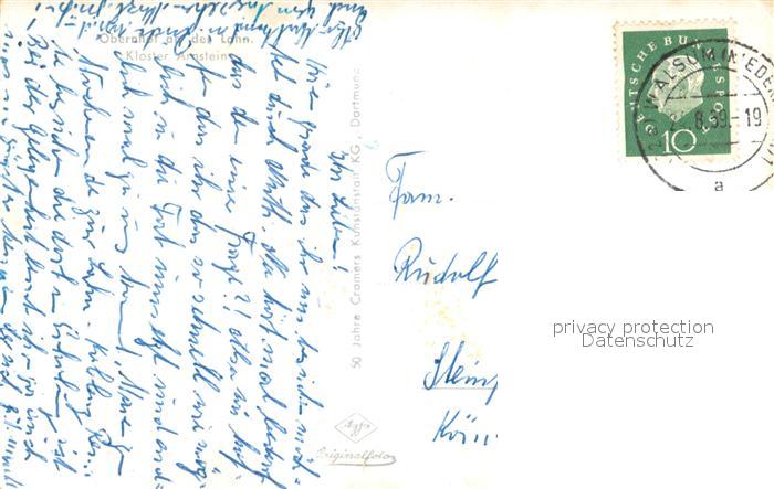 73724535 alte Postkarte Obernhof Lahn Kloster Arnstein Fliegeraufnahme postalisch gelaufen Erhaltung siehe scans [WerneD78] KatCode: 11110007141103