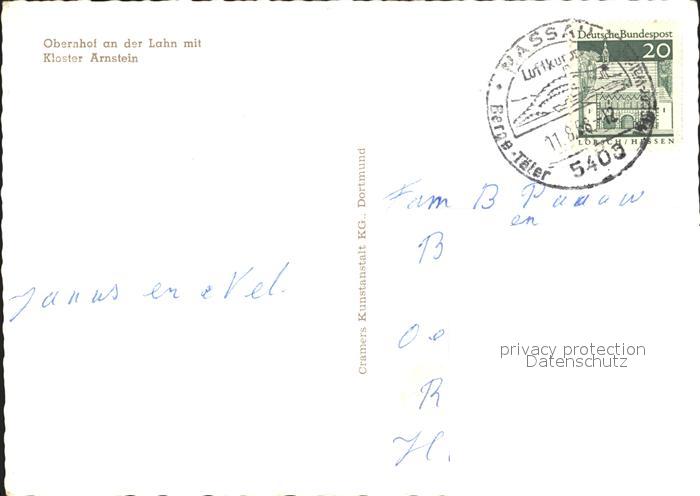 72246242 alte Postkarte Obernhof Lahn Kloster Arnstein mit der Lahn postalisch gelaufen Erhaltung siehe scans KatCode: 11110007141103