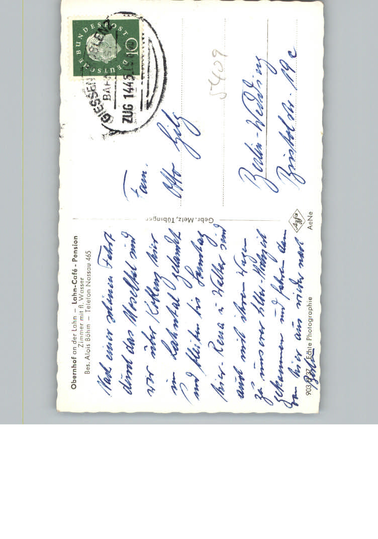 31138446 Obernhof Lahn Lahn-Cafe-Pension postalisch nicht gelaufen KatCode: 11110007141103