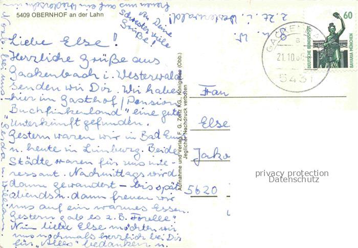 74040588 alte Postkarte Obernhof Lahn Panorama Blick ins Tal postalisch gelaufen Erhaltung siehe scans [FriedD77] KatCode: 11110007141103