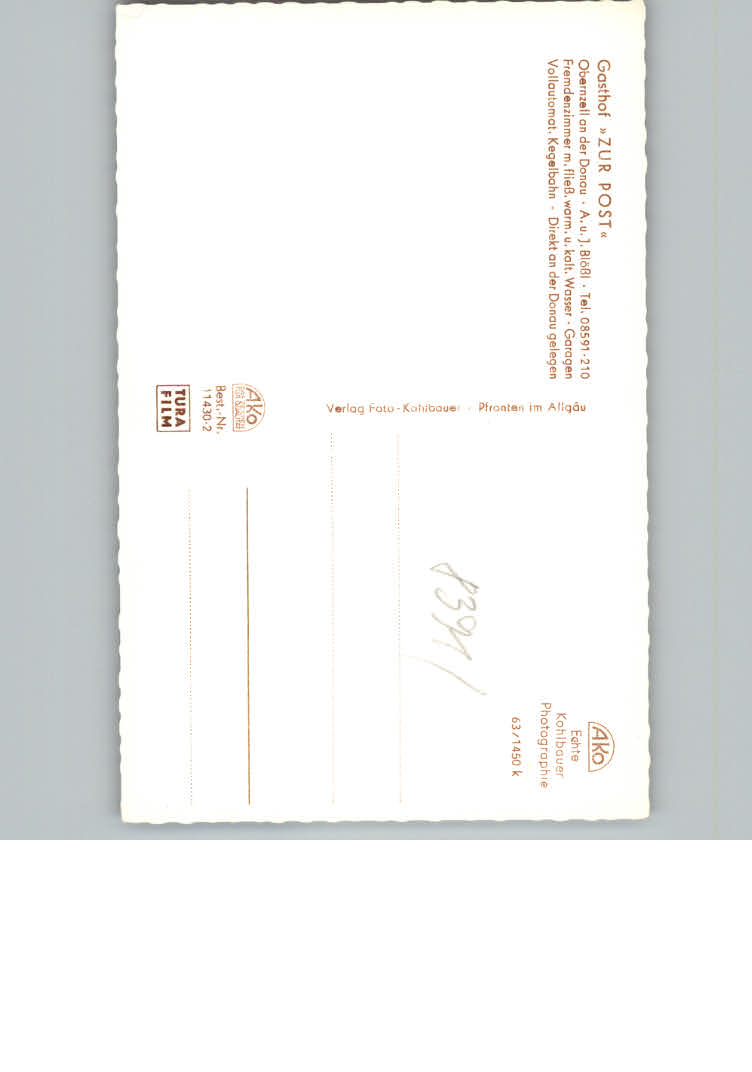 31159909 Obernzell Gasthof zur Post postalisch nicht gelaufen KatCode: 11110009275137