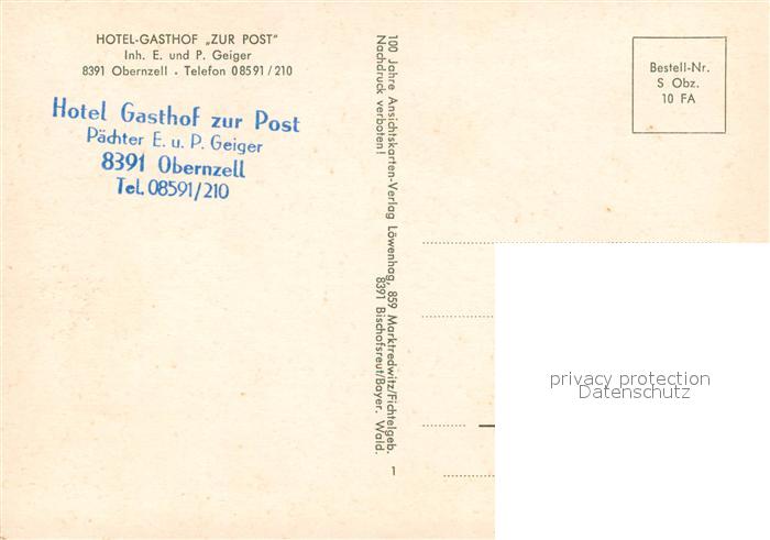 73646572 Obernzell Hotel Gasthof Zur Post postalisch nicht gelaufen Erhaltung siehe scans [FriedD77] KatCode: 11110009275137