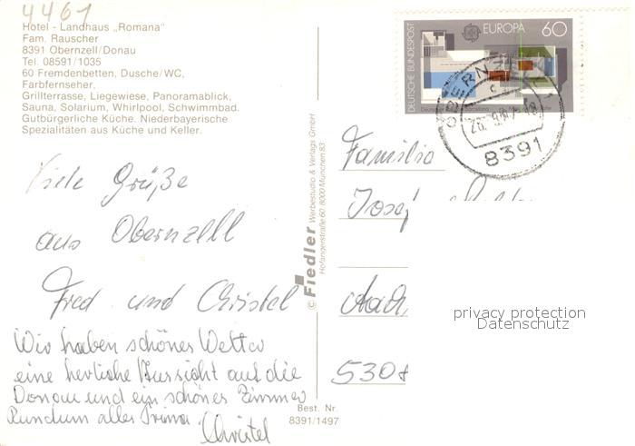 73203592 alte Postkarte Obernzell Hotel Landhaus Romana Restaurant Swimming Pool Terrasse postalisch gelaufen Erhaltung siehe scans [FriedD77] KatCode: 11110009275137