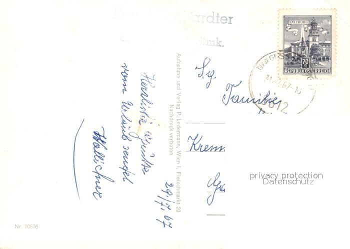 73082914 alte Postkarte Oberort Tragoess Ortsansicht mit Kirche Gruener See Alpenpanorama postalisch gelaufen Erhaltung siehe scans [FriedD77] KatCode: 11390223060220