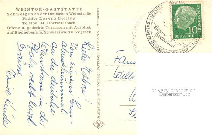 73064466 alte Postkarte Oberotterbach Pfalz Weintor Gaststaette Urkunde postalisch gelaufen Erhaltung siehe scans [FriedD77] KatCode: 11110007337059