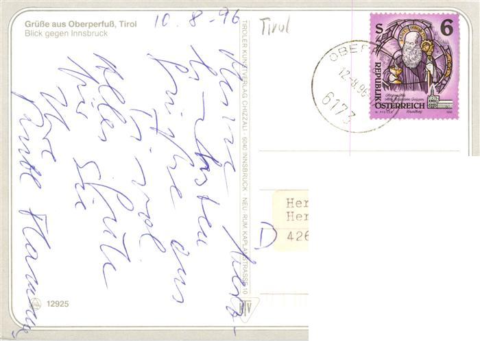 73937227 alte Postkarte Oberperfuss Tirol AT mit Blick gegen Innsbruck postalisch gelaufen Erhaltung siehe scans [WerneD78] KatCode: 11390332070337