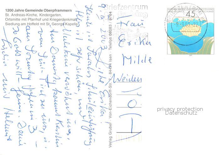73858968 alte Postkarte Oberpframmern St Andreas Kirche Kindergarten Pfarrhof Kriegerdenkmal Siedlung am Hoffeld mit St Georgs Kapelle postalisch gelaufen Erhaltung siehe scans [WerneD78] KatCode: 11110009175131