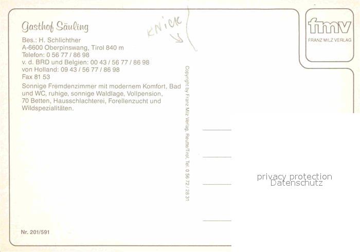 72669068 Oberpinswang Gasthof Saeuling postalisch nicht gelaufen Erhaltung siehe scans [LiesaD40] KatCode: 11390332070101