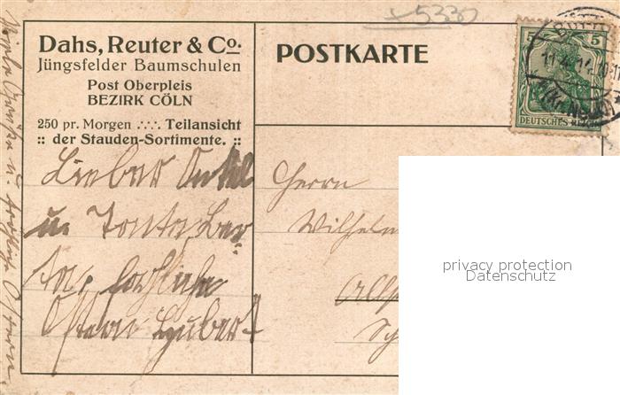 42977759 alte Postkarte Oberpleis Juengsfelder Baumschulen postalisch gelaufen Erhaltung siehe scans [AndreD76] KatCode: 11110005382024