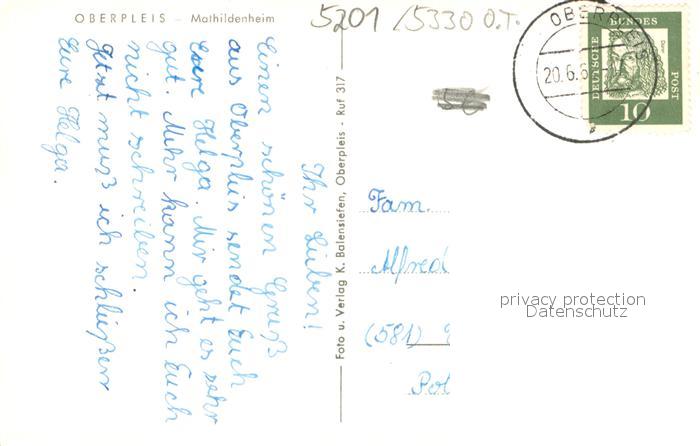 73693798 alte Postkarte Oberpleis Mathildenheim Panorama postalisch gelaufen Erhaltung siehe scans [FriedD77] KatCode: 11110005382024