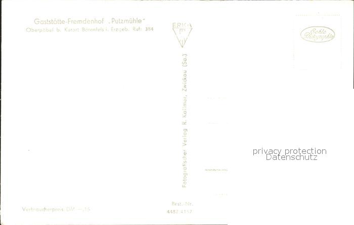 72054016 Oberpoebel Gaststaette Fremdenhof Putzmuehle postalisch nicht gelaufen Erhaltung siehe scans KatCode: 11110014290410
