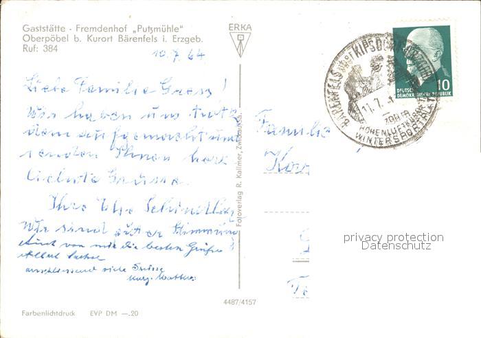 72106826 alte Postkarte Oberpoebel Restaurant Fremdenheim Putzmuehle postalisch gelaufen Erhaltung siehe scans KatCode: 11110014290410