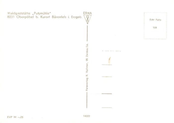 73908326 Oberpoebel Schmiedeberg Waldgaststaette Putzmuehle postalisch nicht gelaufen Erhaltung siehe scans [WerneD78] KatCode: 11110014290410