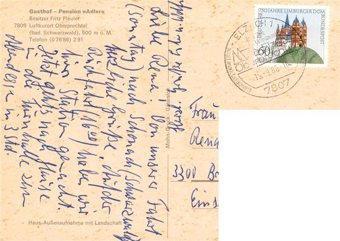 73932634 alte Postkarte Oberprechtal Elzach Elztal BW Gasthof Pension Adler Luftkurort im Schwarzwald postalisch gelaufen Erhaltung siehe scans [FriedD77] KatCode: 11110008316010
