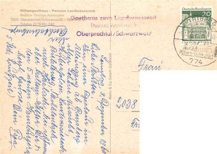 73928995 alte Postkarte Oberprechtal Elzach Elztal BW Hoehengasthaus Pension Landwassereck postalisch gelaufen Erhaltung siehe scans [FriedD77] KatCode: 11110008316010