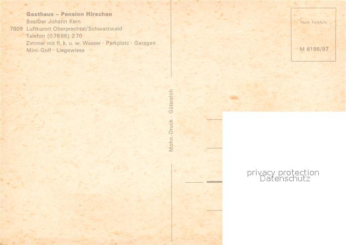 73712588 Oberprechtal Gasthaus Pension Hirschen im Schwarzwald postalisch nicht gelaufen Erhaltung siehe scans [FriedD77] KatCode: 11110008316010