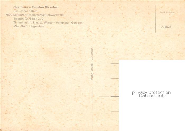 73013309 Oberprechtal Gasthaus Pension Hirschen postalisch nicht gelaufen Erhaltung siehe scans [KathaD81] KatCode: 11110008316010