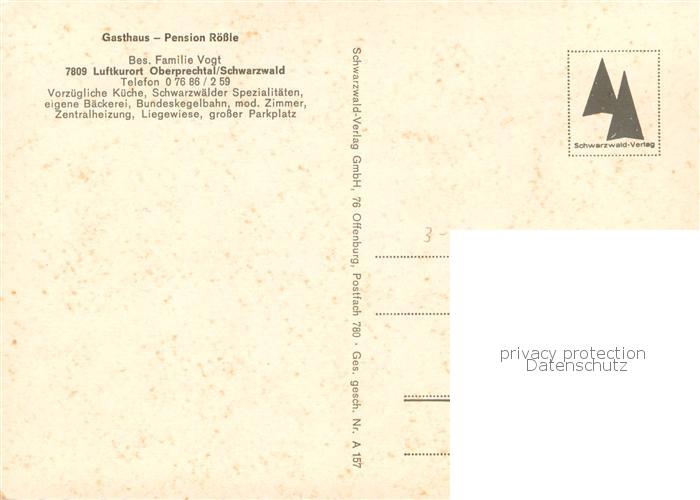73776858 Oberprechtal Gasthaus Roessle postalisch nicht gelaufen Erhaltung siehe scans [WerneD78] KatCode: 11110008316010