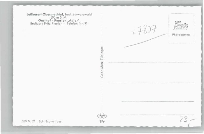 40730249 Oberprechtal Gasthof Pension Adler Huberfelsen Pfauenkreuz KatCode 11110008316010