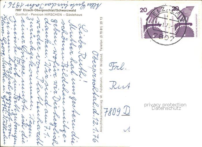 71830760 alte Postkarte Oberprechtal Gasthof-Pension-Gaestehaus Hirschen postalisch gelaufen KatCode: 11110008316010