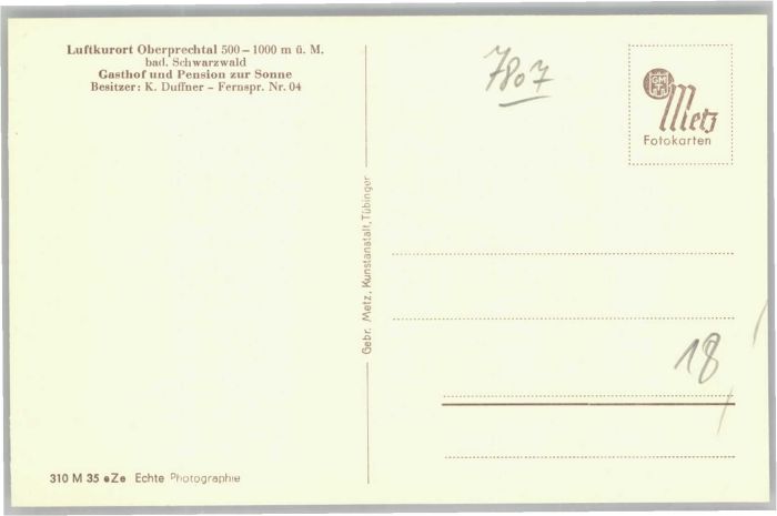 40730231 Oberprechtal Gasthof Pension Sonne KatCode 11110008316010