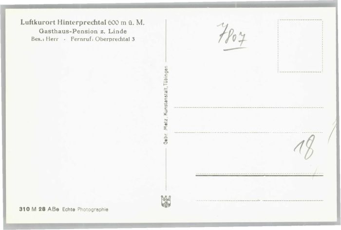 40730230 Oberprechtal Hinterprechtal Gasthaus Pension Linde KatCode 11110008316010