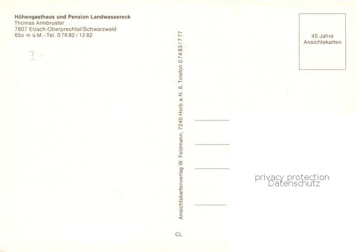 73858801 Oberprechtal Hoehengasthaus Pension Landwassereck im Schwarzwald postalisch nicht gelaufen Erhaltung siehe scans [FriedD77] KatCode: 11110008316010