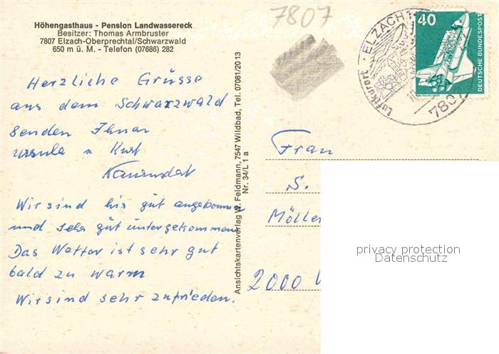 72880176 alte Postkarte Oberprechtal Hoehengasthaus Pension Landwassereck Schwarzwald Fliegeraufnahme postalisch gelaufen Erhaltung siehe scans [FriedD77] KatCode: 11110008316010