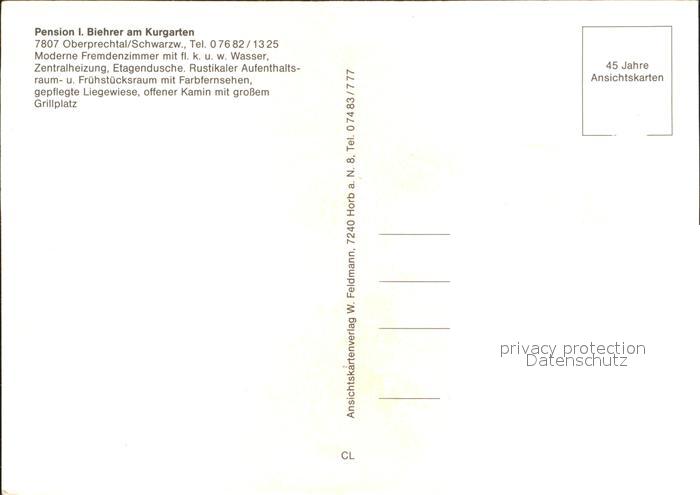 72333809 Oberprechtal Pension L. Biehler am Kurgarten postalisch nicht gelaufen Erhaltung siehe scans KatCode: 11110008316010