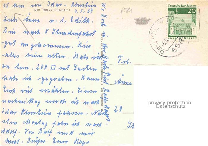 34144797 alte Postkarte Oberreidenbach Birkenfeld Rheinland-Pfalz Fliegeraufnahme postalisch gelaufen Erhaltung siehe scans [FriedD77] KatCode: 11110007134066